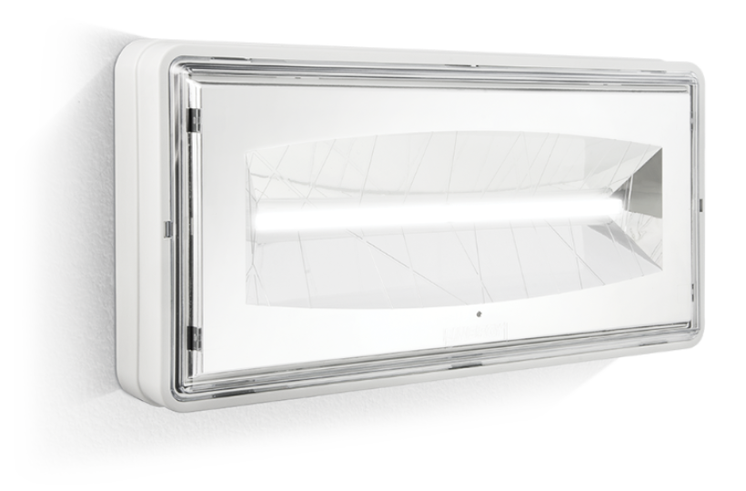 Il riflettore e il vetro diventano un corpo unico e l'installazione viene effettuata in solo 2 mosse. L'apparecchio è dotato di una base a muro con la possibilità di ingresso per un tubo da 16 su tre lati (tramite raccordo IP65 in dotazione) o dal fondo.